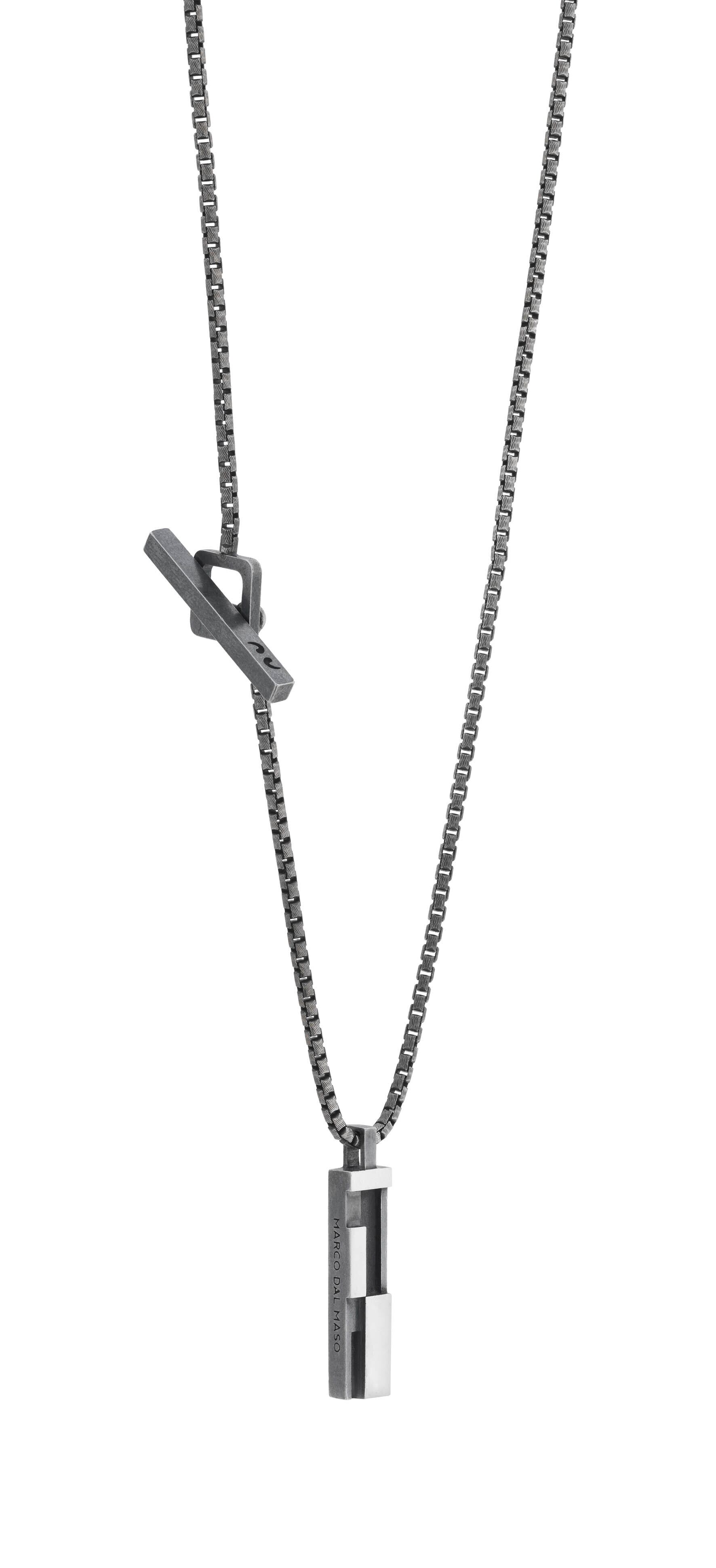 未来派のデザインが今時の男を演出してくれる。シンプルだけど飽きのこないペンダントネックレス。2019年に新たなコレクションとして発表された[De Stijl デ・ステイル]は1920年代オランダで生まれその後のヨーロッパ芸術に大きな影響を与えた幾何学デザインのムーブメントにオマージュしたコレクション。